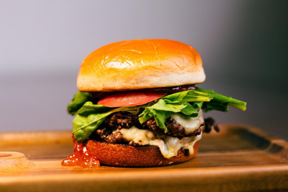 2x Blend Smash 100g, mussarela, geleia de pimenta, rucula e tomate no pao brioche