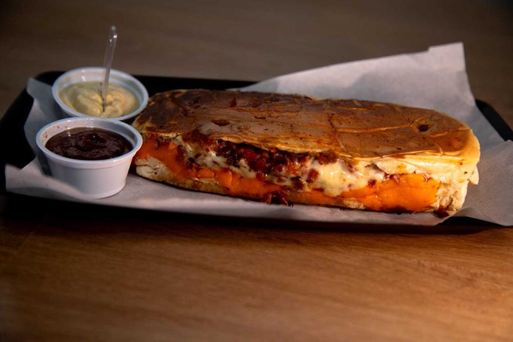 2 salsichas, frango, bacon, queijo, cheddar cremoso e batata palha